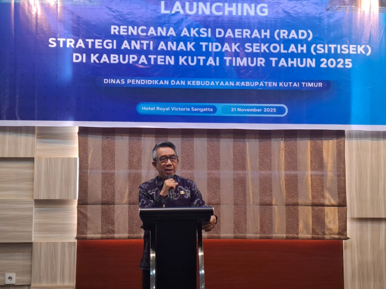 Beritaexpress.com (Kutim) – Launching Rencana Aksi Daerah (RAD) Strategi Anti Anak Tidak Sekolah (SITISEK), yang digagas Dinas Pendidikan dan Kebudayaan Kutim, Jumat (21/11/2025) dibuka secara resmi Bupati Kutai Timur (Kutim) Ardiansyah Sulaiman.