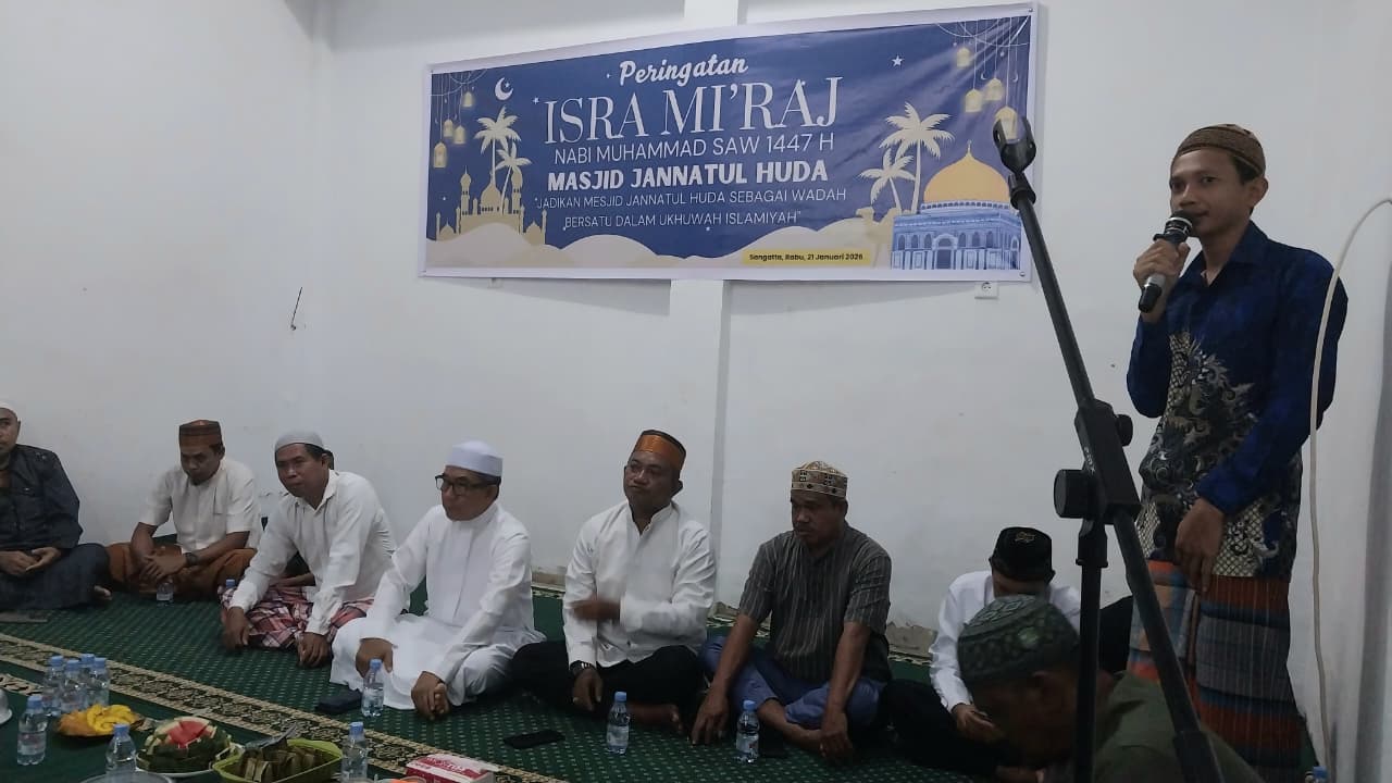 Sebelumnya, Ketua Takmir Masjid Jannatul Huda, Rajab, menyampaikan terima kasih kepada seluruh pengurus masjid, guru dan murid TPA, para jemaah, serta semua pihak yang telah berkontribusi dalam menyukseskan peringatan Isra Mikraj tersebut. Ia menjelaskan bahwa tema kegiatan kali ini adalah “Jadikan Masjid Jannatul Huda sebagai Wadah Bersatu dalam Ukhuwah Islamiyah”.
