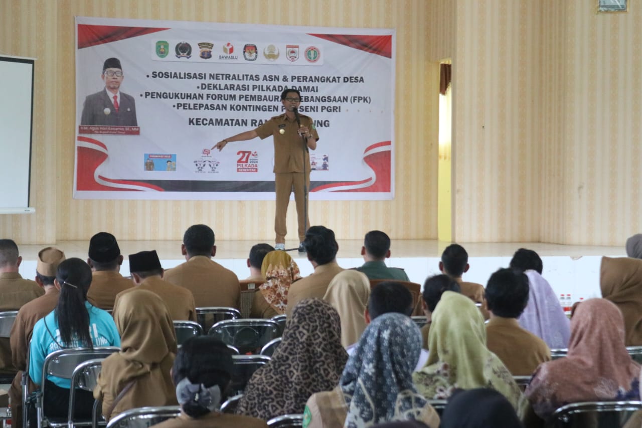 BeritaExpress.com] RANTAU PULUNG – Menjelang Pilkada serentak pada 27 November 2024, Penjabat Sementara (Pjs) Bupati Kutai Timur (Kutim), H M Agus Hari Kesuma, menyerukan pentingnya menjaga netralitas dan demokrasi di kalangan Aparatur Sipil Negara (ASN), TNI, Polri, kepala desa, dan perangkat desa. Dalam kunjungan kerjanya di Kecamatan Rantau Pulung, Agus menekankan bahwa peran aktif seluruh elemen pemerintahan sangat penting dalam menjaga situasi tetap kondusif, terutama mendekati momen politik yang krusial ini.Pernyataan tersebut disampaikan Agus dalam acara Sosialisasi Netralitas ASN dan Perangkat Desa, Deklarasi Pilkada Damai, Pengukuhan Forum Pembauran Kebangsaan (FPK), serta Pelepasan Kontingen Porseni PGRI Kecamatan Rantau Pulung belum lama ini.Agus mengingatkan agar para ASN berhati-hati dalam bersikap, terutama saat beraktivitas di ruang publik dan media sosial. Ia menegaskan bahwa kecanggihan teknologi saat ini mempermudah proses pengawasan terhadap ASN, sehingga tindakan yang tidak netral dapat dengan mudah dilaporkan. “Jangan macam-macam! Jaga lisan dan tindakan kita, terutama di media sosial. Teknologi sekarang canggih, setiap gerakan bisa dipantau dan direkam. Jadi, berhati-hatilah,” tegas Agus.Selain ASN, Agus juga mengajak seluruh masyarakat, khususnya perangkat desa, untuk berperan aktif dalam menjaga keamanan dan kedamaian di lingkungan masing-masing. Ia berharap agar Forum Pembauran Kebangsaan (FPK), yang baru saja dikukuhkan, dapat menjadi sarana komunikasi untuk mempererat keberagaman dan merawat kerukunan antarwarga. “Perbedaan pilihan politik itu hal biasa. Jangan sampai perbedaan ini merusak keharmonisan masyarakat. Perbedaan adalah rahmat yang harus dijaga,” ujar Agus.Camat Rantau Pulung, Tristiningsih, dalam sambutannya menekankan bahwa kegiatan ini bertujuan memberikan edukasi politik kepada masyarakat menjelang Pilkada serentak. Ia menilai, peran Forkopimcam sangat penting dalam menjamin pelaksanaan Pilkada yang aman dan damai. “Ini wujud tanggung jawab kami untuk memberikan pendidikan politik kepada masyarakat, sehingga mereka dapat memilih dengan bijak. Kami juga memastikan seluruh elemen bekerja sama menjaga agar Pilkada berjalan damai dan tanpa konflik,” jelas Tristiningsih.Acara ini juga dimanfaatkan sebagai momen pelepasan kontingen Porseni PGRI Kecamatan Rantau Pulung yang akan bertanding di tingkat kabupaten. Harapan besar diberikan kepada para peserta untuk membawa nama baik kecamatan pada ajang tersebut, sekaligus menunjukkan bahwa masyarakat Kutim siap mendukung aktivitas yang membangun persatuan.Dengan persiapan yang matang dan kolaborasi antara pemerintah, aparat keamanan, dan masyarakat, diharapkan Pilkada di Kutim dapat berlangsung lancar tanpa gangguan. Agus optimistis bahwa seluruh elemen di Kutim akan bekerja sama menjaga netralitas dan menciptakan Pilkada yang damai, sehingga terpilih pemimpin yang benar-benar menjadi pilihan rakyat. (Arn)